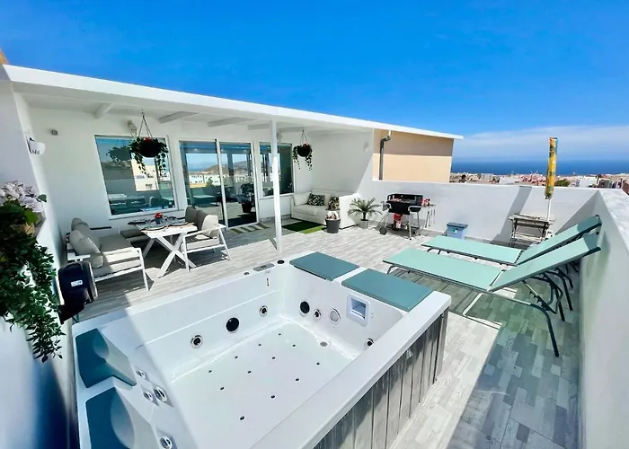 Villa Blanca Tenerife - Atico Loft San Isidro ligt in San Isidro, binnen 16 minuten loopafstand van het Maanlandschap, en biedt spafaciliteiten zoals een solarium, een bubbelbad en warme openbare baden. Parroquia en het Playa La Jaquita liggen binnen 300 meter afstand van en binnen 4 km van het appartement van 100 m².